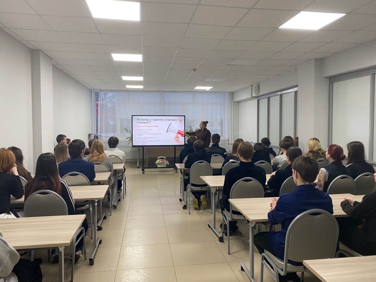 9 декабря в БПОУ ВО «Вологодский колледж сервиса» состоялась лекция, посвященная профилактики гриппа и ОРВИ, студентов встретила Петросян Елизавета Петровна - помощник врача-эпидемиолога из ФБУЗ «Центр гигиены и эпидемиологии в Вологодской области». На семинаре были освещены профилактические мероприятия в период подъема инфекционной заболеваемости, необходимость вакцинопрофилактики, как основной защиты против гриппа, ОРВИ и некоторых острых кишечных инфекций.  |