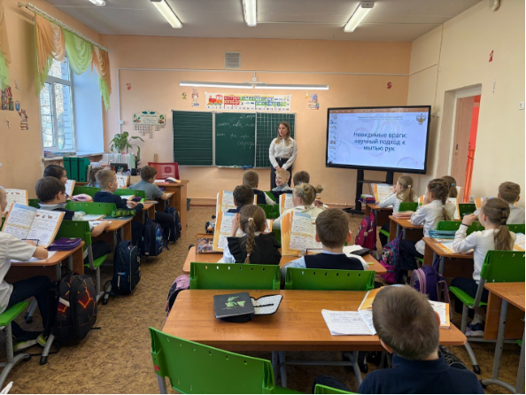 25 марта 2026 года в рамках просветительского проекта «Лекторий «Санпросвет» специалистами ФБУЗ «Центр гигиены и эпидемиологии в Вологодской области» были проведены лекции на тему: «Гигиена рук» для детей посещающих детские сады и школы. Специалисты посетили следующие общеобразовательные учреждения: МАОУ "Средняя общеобразовательная школа № 13 имени А.А. Завитухина" г. Вологда - 8 лекций, МБОУ «Аргуновская СОШ» Никольский округ, МАОУ "СОШ № 20", МБДОУ "Центр развития ребёнка - детский сад № 2" г. Грязовец. Специалистами были даны актуальные рекомендации по гигиене рук, дети узнали, откуда берутся микробы и как с ними бороться, как укрепить иммунитет и оставаться здоровым. Лекции проходили в формате живого общения, ребята задали все интересующие вопросы и получили на них ответы. Проект «Санпросвет» «Санитарный щит страны – безопасность для здоровья (предупреждение, выявление, реагирование)» реализуется в рамках информационно-коммуникационной стратегии Роспотребнадзора.