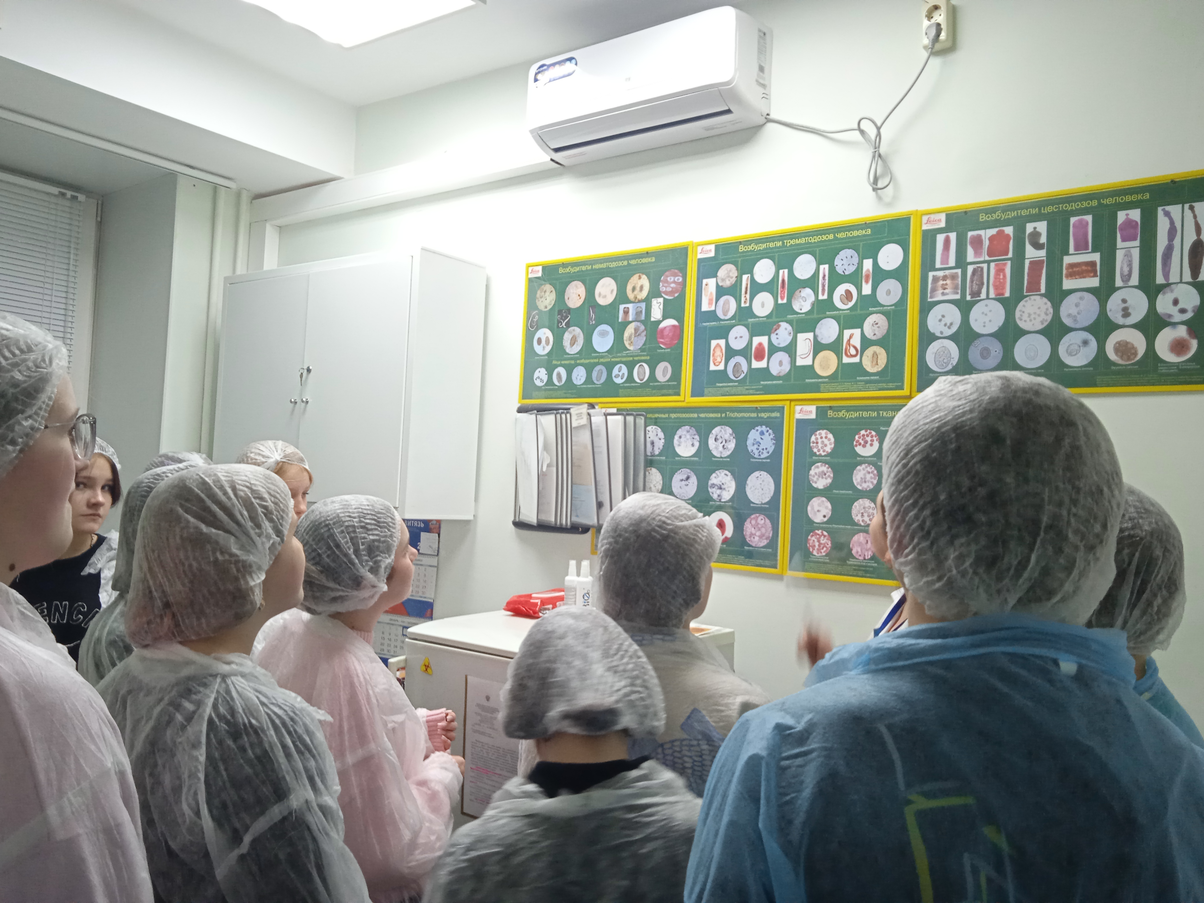 05 декабря 2025 года для школьников 8 класса МАОУ «СОШ № 5» и 10 класса МАОУ «СОШ №16» специалисты провели экскурсию по лабораториям ФБУЗ «Центр гигиены и эпидемиологии в Вологодской области». Учащиеся посетили бактериологическую, паразитарную, санитарно – гигиеническую лаборатории. В ходе экскурсии школьники узнали о санитарно - химических испытаниях объектов окружающей среды, в том числе водных ресурсов, почвы, воздуха и пищевой продукции; исследованиях микроорганизмов и их влиянии на здоровье человека; о том, как проводят диагностические исследования биологического материала для выявления патогенных микроорганизмов и даже позволили заглянуть в микроскоп.    |